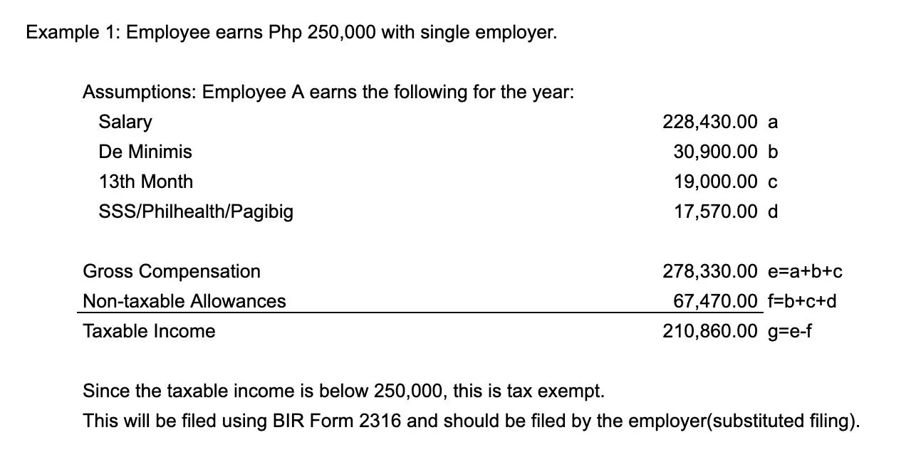 Example 2: Employee earns exceeding Php 250,000 with single employer.