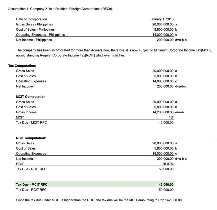 Example 3: Minimum Corporate Income Tax (MCIT) for Domestic Corporations